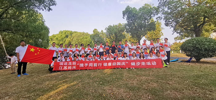 秋風(fēng)和煦,暖意融融。為慶祝祖國(guó)70華誕,2019年9月30日,瑞迪高新、江蘇科興聯(lián)合舉辦了“攜手同前行,健康迎國(guó)慶”健步走活動(dòng)。南科院戴濟(jì)群副院長(zhǎng)、總公司唐云清總經(jīng)理、公司徐志峰董事長(zhǎng)及兩公司40多名職工參加此活動(dòng)。 全體人員統(tǒng)一著裝,從綠博園北門出發(fā),踏著秋風(fēng),沿著綠色步道,開(kāi)始了健步走活動(dòng)。一路上,秋風(fēng)送爽,丹桂飄香,大家歡聲笑語(yǔ),相互間盡情舒懷,釋放工作的壓力,盡情陶醉在這美景之中。 此次活動(dòng)進(jìn)一步激發(fā)了大家的愛(ài)國(guó)情懷,豐富了公司精神文化生活,促進(jìn)了溝通,增進(jìn)了友誼,增強(qiáng)了院科技產(chǎn)業(yè)部門的凝聚力和向心力。