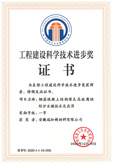 | 喜報(bào)!安徽瑞和新材料有限公司榮獲2020年工程建設(shè)科學(xué)技術(shù)進(jìn)步一等獎(jiǎng) | |