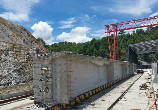 宜春至遂川高速公路項目是江西省規(guī)劃建設(shè)的一條重要地方加密線。該項目應(yīng)用公司HLC-IX聚羧酸系高性能減水劑。2021年6月11日,江西交工宜遂高速SSA標(biāo)路基三分部首件T梁順利完成澆筑,標(biāo)志著該分部2#預(yù)制梁場正式投產(chǎn),由此拉開了橋梁上部結(jié)構(gòu)施工序幕。 為保障本次首梁的順利澆筑,公司技術(shù)人員經(jīng)過兩次試驗梁試驗,研究了外加劑配方、混凝土施工配合比、振搗時間、澆筑方式等對梁外觀的影響,并配合路基三分部組織施工人員進(jìn)行技術(shù)、安全交底,從細(xì)節(jié)入手,注重澆筑施工每個環(huán)節(jié),及時發(fā)現(xiàn)、解決問題。
