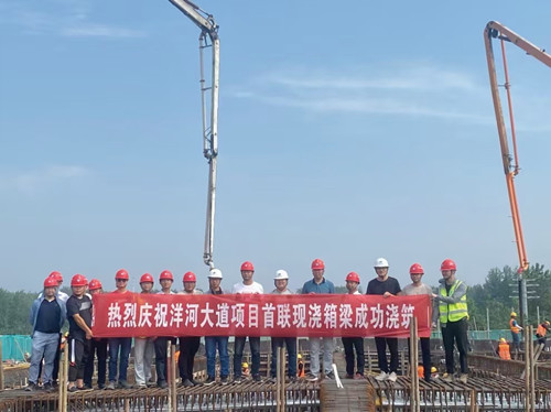 2021年6月19日,中國建筑第五工程局有限公司洋河大道(黃河南路)快速化改造工程施工項(xiàng)目YHDD-TJ1標(biāo)應(yīng)用公司聚羧酸系高性能減水劑順利完成首聯(lián)現(xiàn)澆箱梁混凝土澆筑,一次澆筑總方量達(dá)1100m3。 針對首聯(lián)現(xiàn)澆箱梁混凝土澆筑過程中可能會出現(xiàn)的各種突發(fā)情況,公司技術(shù)人員進(jìn)行多次比對篩選試驗(yàn),有效解決了現(xiàn)場C50混凝土粘重難泵送、敏感的難題,以及混凝土可能出現(xiàn)的浮漿、骨料下沉、外觀差等通病。 公司將一如既往地致力于各領(lǐng)域大型工程現(xiàn)場技術(shù)咨詢與服務(wù),高效解決混凝土現(xiàn)場施工面臨的技術(shù)難題,為助力品質(zhì)工程而不懈努力。
