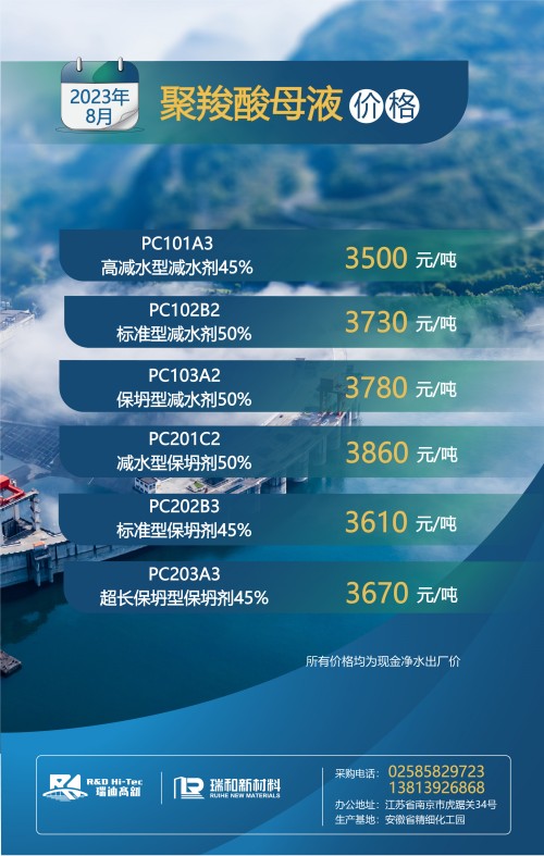 【聚羧酸系減水劑母液月度最新價(jià)格】丨2023年8月