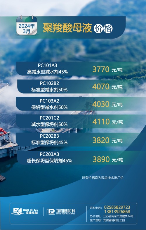 【聚羧酸系減水劑母液月度最新價格】丨2024年3月