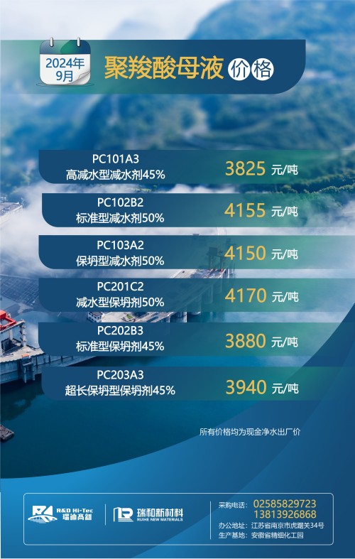 【聚羧酸系減水劑母液月度最新價格】丨2024年9月